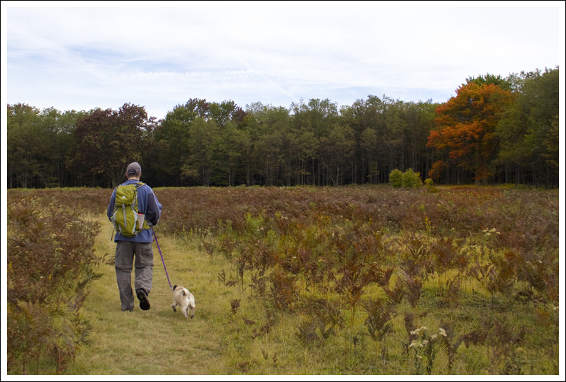 Stopping along the Blackwater River. Below: Adam and Wookie make their way along the South Beall Trail; More pretty trail scenery.