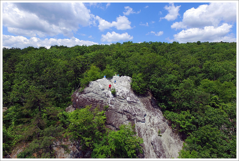 When we got to the summit, we had the observation tower all to ourselves. We watched birds in the treetops, spotted lizards climbing around on the rocks and took in a fantastic view of the Shenandoah River and the Page Valley. It was one of the least hazy days we’ve had in a while, so we could clearly see Shenandoah National Park from this summit. Lots of vultures were soaring overhead, and even though they’re kind of creepy, they were casting cool bird-shaped shadows onto the mountain top. I always like it when they do that.