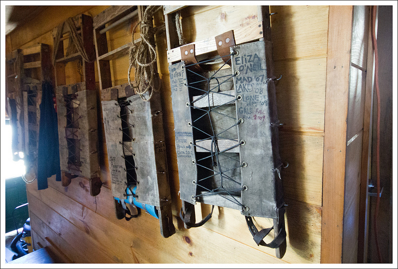 Each hut is run by a ‘Croo’ – mostly college students on summer break. They carry supplies for the hut on their backs using these wooden racks.