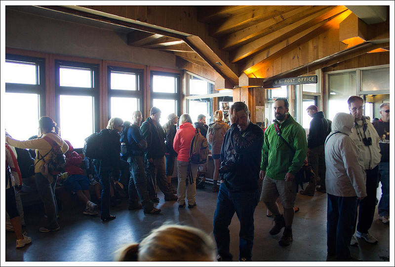 We could tell we were getting really close when we started seeing more and more people in jeans, sneakers and sweatshirts milling about the trail. These were the car and train people! Eventually the trail emptied us out onto the summit. We passed the historic hotel-turned-museum – Tip Top House – and made our way over to the summit marker. We actually had to wait in line with all the car and train people to have our picture taken at the summit sign. It’s always funny to finish a hike that has a summit that can also be reached by car – Clingmans Dome comes to mind (the high point on the Appalachian Trail).