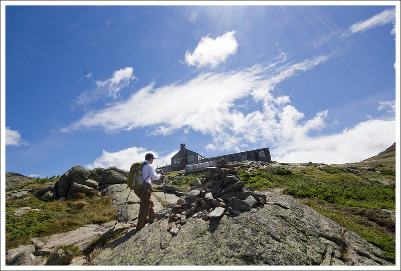 Christine and I do like to hike with goals in mind. Since we have climbed a few of the 4000-footers in New Hampshire (there are 48), we have thought about possibly trying to bag all of those peaks. Last year on our visit, I picked up AMC’s Passport to AMC’s High Huts in the White Mountains. That book describes each of AMC’s huts through the White Mountains and details the history, features, and interesting stories about each of the huts. It also serves as a passport that you can have stamped at each location to mark that you have been there (you can even earn a patch when you’ve visited them all). This was definitely enough of an incentive to try and reach all the huts.