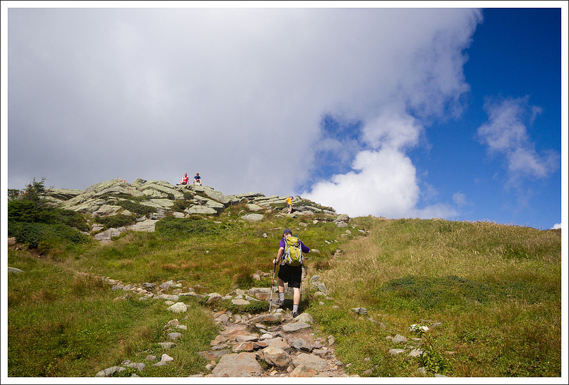 Between the Mizpah Cut-Off trail and the summit, we were passed by a pair of trail runners. Running on mid-Atlantic mountain trails is challenging enough. I can’t even imagine keeping that pace over the rocks and roots of New Hampshire!