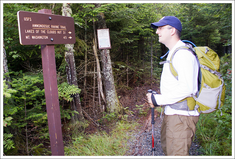 There are a lot of ways up Mt. Madison, but in our research we found the most popular way was to make our approach by going up the Valley Way trail. We parked at the large Appalachia parking lot (which was so full we needed to park on the road) directly on US-2. We were worried there would be so many people on the trail, but this parking lot holds the beginnings of lots of trails that lead up to many peaks (including Mt. Adams and Mt. Quincy Adams).