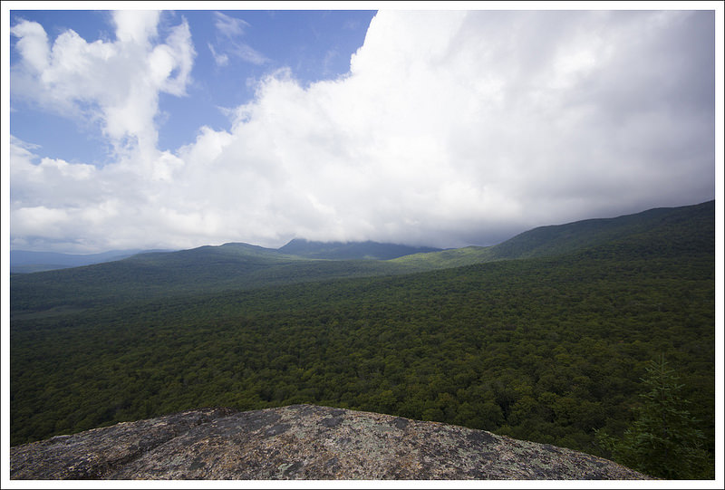 When we reached the summit, it was still fairly early, so we only shared the vista with one other couple. We spent some time enjoying the views through the notch and watching the dramatic clouds swirling over Kinsman ridge. After about 20 minutes, more people started to arrive to the summit, so we made our way down. We were back at the car before noon. Since it was so early in the day, we decided to get some lunch at White Mountain Bagel Co. (great deli sandwiches) and see a matinee of Guardians of the Galaxy. While we were at lunch, a pressing cold front passed and it started *pouring*! The cold front was a welcome change, as it brought a forecast of clear, pleasant days – perfect for tackling bigger things! After a nice low-key day on Pemigewasset, we were definitely feeling ready to tackle some above-treeline Presidentials! Stay tuned!