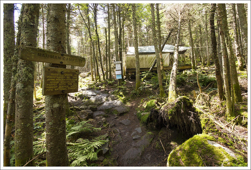 We started off our hike from the opposite side of I-93, so we walked underneath the interstate bridge and followed the signs for the Lonesome Lake hike. This led us into Lafayette Place campground, which has 98 campsites. With such nice weather we were having, it was no surprise that the campground was full. It always feels awkward to me to be walking by campsites while people are still sleeping, eating breakfast, or hanging out. We made our way along quietly and then reached the true trailhead next to campsite #93.