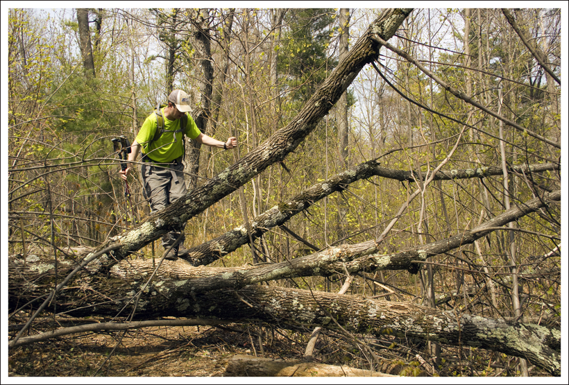 - Trail Conditions – 3.5. There were a few blow downs that required navigation, but most of the trail is smooth, easy footing. The descent to the waterfall showcases the great work trail maintainers do in the park. They turned a extremely steep piece of terrain into a giant staircase with a series of well-placed rocks.